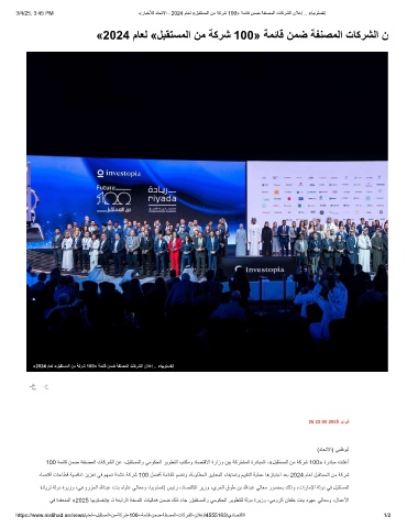 3/4/25, 3:45 PM «رﺎﺑﺧﻸﻟ دﺎﺣﺗﻻا - 2024 مﺎﻌﻟ «لﺑﻘﺗﺳﻣﻟا نﻣ ﺔﻛرﺷ 100» ﺔﻣﺋﺎﻗ نﻣﺿ ﺔﻔﻧﺻﻣﻟا تﺎﻛرﺷﻟا نﻼﻋإ .. «ﺎﯾﺑوﺗﺳﻔﻧإ