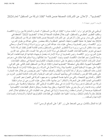3/4/25, 3:45 PM 2024 مﺎﻌﻟ "لﺑﻘﺗﺳﻣﻟا نﻣ ﺔﻛرﺷ 100" ﺔﻣﺋﺎﻗ نﻣﺿ ﺔﻔﻧﺻﻣﻟا تﺎﻛرﺷﻟا نﻋ نﻼﻋﻹا .."ﺎﯾﺑوﺗﺳﻔﻧإ" | تارﺎﻣﻹا ءﺎﺑﻧأ ﺔﻟﺎﻛو