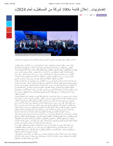 3/4/25, 3:46 PM «2024 مﺎﻌﻟ «لﺑﻘﺗﺳﻣﻟا نﻣ ﺔﻛرﺷ 100» ﺔﻣﺋﺎﻗ نﻼﻋإ ..«ﺎﯾﺑوﺗﺳﻔﻧإ
