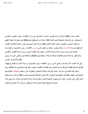3/4/25, 3:46 PM «2024 مﺎﻌﻟ «لﺑﻘﺗﺳﻣﻟا نﻣ ﺔﻛرﺷ 100» ﺔﻣﺋﺎﻗ نﻼﻋإ ..«ﺎﯾﺑوﺗﺳﻔﻧإ