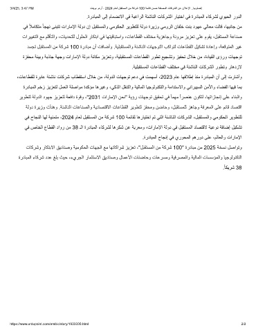 ﻲﻓ صﺎﺧﻟا عﺎطﻘﻟا داور نﻣ 38 ـﻟا ةردﺎﺑﻣﻟا ءﺎﻛرﺷﻟ ﺎھرﻛﺷ نﻋ ﺔﺑرﻌﻣو ،تارﺎﻣﻹا ﺔﻟود ﻲﻓ لﺑﻘﺗﺳﻣﻟا دﺎﺻﺗﻗﻻ ﺔﯾﻋوﻧ ﺔﻓﺎﺿإ لﯾﻛﺷﺗ