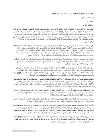 ةينمتم ، 2024 ماعل لبقتسملا نم ةكرش 100 ةمئاقل اهرايتخا مت يتلا ةئشانلا تاكرشلا ،لبقتسملاو يموكحلا ريوطتلل ةلود ةريزو تأنهو
