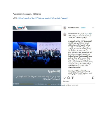 Publication: Instagram – Al Wahda Link: ..2024 ماعل "لبقتسلما نم ةكرش 100" ةمئاق نمض ةفنصلما تاكرشلا نع نلاعلإا .."ايبوتسفنإ#"