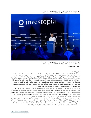 ايسآ لودو ةيبرعلا لودلا نم نيرمثتسملاو لامعلأا لاجر رمتؤمل ىلولأا ةرودلا ،» 2025 ايبوتسفنإ« نم ةعبارلا ةخسنلا تفاضتسا