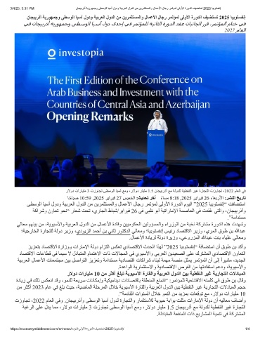 3/4/25, 3:31 PM نﺎﺟﯾﺑرذأ ﺔﯾروﮭﻣﺟو ﻰطﺳوﻟا ﺎﯾﺳآ لودو ﺔﯾﺑرﻌﻟا لودﻟا نﻣ نﯾرﻣﺛﺗﺳﻣﻟاو لﺎﻣﻋﻷا لﺎﺟر رﻣﺗؤﻣﻟ ﻰﻟوﻷا ةرودﻟا فﯾﺿﺗﺳﺗ 2025 ﺎﯾﺑوﺗﺳﻔﻧإ