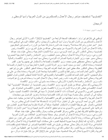 3/4/25, 3:31 PM نﺎﺟﯾﺑرذأ و ﻰطﺳوﻟا ﺎﯾﺳآو ﺔﯾﺑرﻌﻟا لودﻟا نﻣ نﯾرﻣﺛﺗﺳﻣﻟاو لﺎﻣﻋﻷا لﺎﺟر رﻣﺗؤﻣ فﯾﺿﺗﺳﺗ "ﺎﯾﺑوﺗﺳﻔﻧإ" | تارﺎﻣﻹا ءﺎﺑﻧأ ﺔﻟﺎﻛو