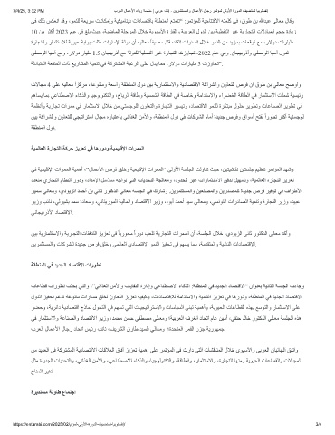 ﻲﻓ ﻚﻟذ ﺲﻜﻌﻧا ﺪﻗو ،ﻮﻤﻨﻠﻟ ﺔﻌﯾﺮﺳ تﺎﻧﺎﻜﻣإو ﺔﯿﻜﯿﻣﺎﻨﯾد تادﺎﺼﺘﻗﺎﺑ ﺔﻘﻄﻨﻤﻟا ﻊﺘﻤﺘﺗ“ :ﺮﻤﺗﺆﻤﻠﻟ ﺔﯿﺣﺎﺘﺘﻓﻻا ﮫﺘﻤﻠﻛ ﻲﻓ ،قﻮط ﻦﺑ ﷲﺪﺒﻋ ﻲﻟﺎﻌﻣ لﺎﻗو