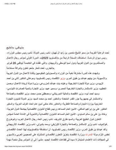 لﺎﻣﻋﻷا لﺎﺟر رﻣﺗؤﻣﻟ ﻰﻟوﻷا ةرودﻟا ،«2025 ﺎﯾﺑوﺗﺳﻔﻧإ» نﻣ ﺔﻌﺑارﻟا ﺔﺧﺳﻧﻟا تﻓﺎﺿﺗﺳا ،ﺔﺳﺎﺋرﻟا ناوﯾد سﯾﺋر