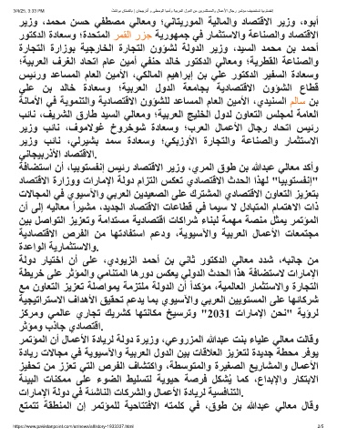 دﺎﺼﺘﻗﻻا ةرازوو تارﺎﻣﻹا ﺔﻟود ماﺰﺘﻟا ﺲﻜﻌﺗ يدﺎﺼﺘﻗﻻا ثﺪﺤﻟا اﺬﮭﻟ "ﺎﯿﺑﻮﺘﺴﻔﻧإ"
