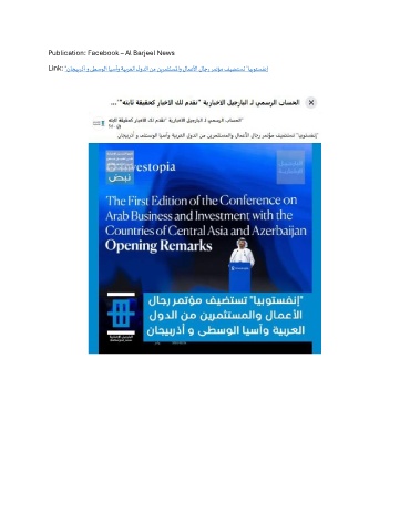 Publication: Facebook – Al Barjeel News Link: " ناجيبرذأ و ىطسولا ايسآو ةيبرعلا لودلا نم نيرمثتسلماو لامعلأا لاجر رمتؤم فيضتست "ايبوتسفنإ