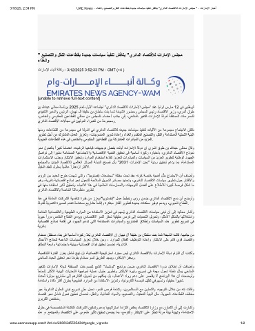 3/18/25, 2:34 PM UAE News - ءاذﻐﻟاو ﻊﯾﻧﺻﺗﻟاو لﻘﻧﻟا تﺎﻋﺎطﻘﺑ ةدﯾدﺟ تﺎﺳﺎﯾﺳ ذﯾﻔﻧﺗ شﻗﺎﻧﯾ "يرﺋادﻟا دﺎﺻﺗﻗﻼﻟ تارﺎﻣﻹا سﻠﺟﻣ " - تارﺎﻣﻹا رﺎﺑﺧأ