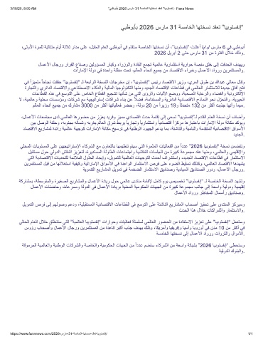 ﻲﺑظوﺑﺄﺑ 2026 سرﺎﻣ 31 ﺔﺳﻣﺎﺧﻟا ﺎﮭﺗﺧﺳﻧ دﻘﻌﺗ ”ﺎﯾﺑوﺗﺳﻔﻧإ“