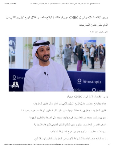 3/14/25, 2:14 PM ةﺎﻧﻗ CNBC ل ﻲﺗارﺎﻣﻹا دﺎﺻﺗﻗﻻا رﯾزو | ﺔﯾﺑرﻋ CNBC تﺎﯾﻧوﺎﻌﺗﻟا نوﻧﺎﻗ نﺄﺷﺑ مﺎﻌﻟا نﻣ ﻲﻧﺎﺛﻟاو لوﻷا ﻊﺑرﻟا لﻼﺧ ردﺻﺗﺳ ﺢﺋاوﻟ 6 كﺎﻧھ :ﺔﯾﺑرﻋ
