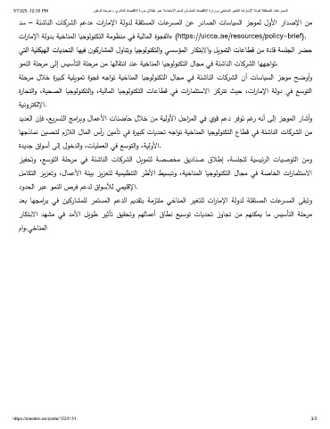 تارﺎﻣﻹا ﺔﻟودﺑ ﺔيﺧﺎنمﻟا ﺎيﺟوﻟونكتﻟا ﺔﻣوظنﻣ ﻲﻓ ﺔيﻟﺎمﻟا ةوجﻔﻟا» (https://uicca.ae/resources/policy-brief).