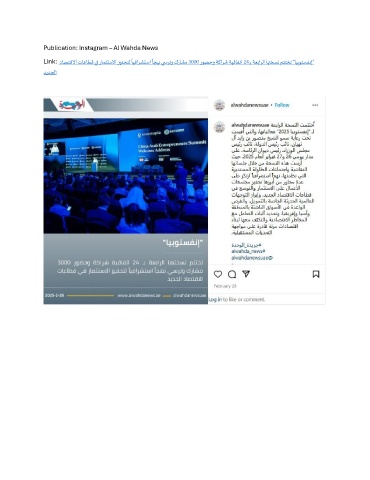 Publication: Instagram – Al Wahda News ً ً Link: داصتقلاا تاعاطق يف رامثتسلاا زيفحتل ايفارشتسا اجهن ي سرتو كراشم 3000 روضحو ةكارش ةيقافتا 24 ـب ةعبارلا اهتخسن متتخت ”ايبوتسفنإ“ ديدجلا