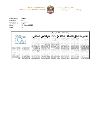 Publication: Al Fajr Country: UAE Circulation: 34,596 Date: 11 August 2025 Page: 14