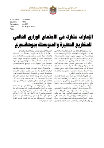 Publication: Al Watan Country: UAE Circulation: 83,000 Date: 07 August 2025 Page: 1