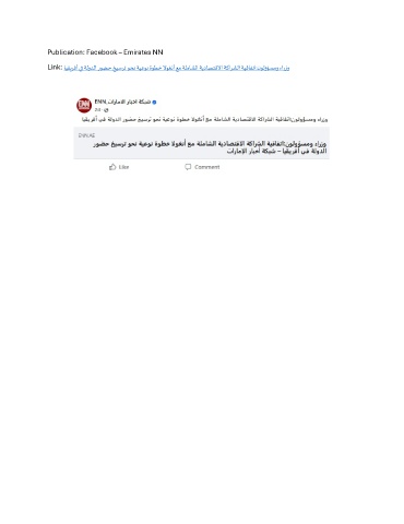 Publication: Facebook – Emirates NN Link: ايقيرفأ يف ةلودلا روضح خيسرت وحن ةيعون ةوطخ لاوغنأ عم ةلماشلا ةيداصتقلاا ةكارشلا ةيقافتا:نولوؤسمو ءارزو