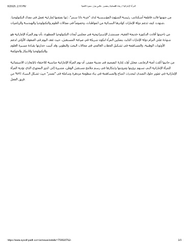 ﻮھ ﺔﯿﺗارﺎﻣﻹا ةأﺮﻤﻟا مﻮﻳ نﺄﺑ ،ةرﻮﻄﺘﻤﻟا ﺎﯿﺟﻮﻟﻮﻨﻜﺘﻟا ثﺎﺤﺑأ ﺲﻠﺠﻣ ﻲﻓ ﺔﯿﺠﯿﺗاﺮﺘﺳﻹا رﺎﺸﺘﺴﻣ ،ﻪﯿﻘﻔﻟا ﺔﺠﻳﺪﺧ ةرﻮﺘﻛﺪﻟا تدﺎﻓأ ﺎﮫﺘﯿﺣﺎﻧ ﻦﻣ