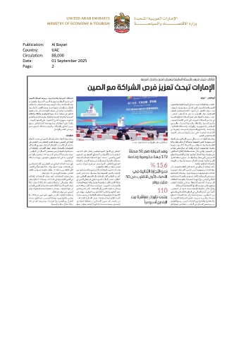 Publication: Al Bayan Country: UAE Circulation: 88,000 Date: 01 September 2025 Page: 2