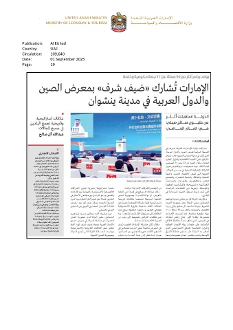 Publication: Al Etihad Country: UAE Circulation: 109,640 Date: 01 September 2025 Page: 19