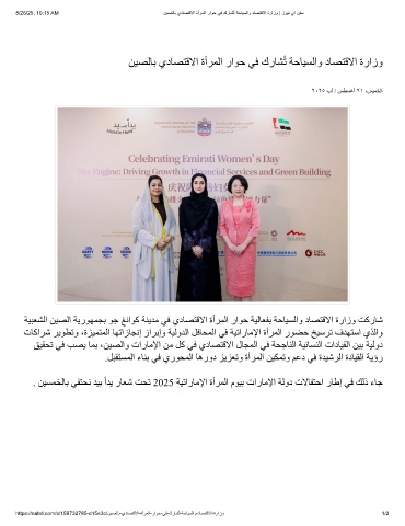 ﻦﯿﺼﻟﺎﺑ يدﺎﺼﺘﻗﻻا ةأﺮﻤﻟا راﻮﺣ ﻲﻓ كرﺎﺸُﺗ ﺔﺣﺎﯿﺴﻟاو دﺎﺼﺘﻗﻻا ةرازو