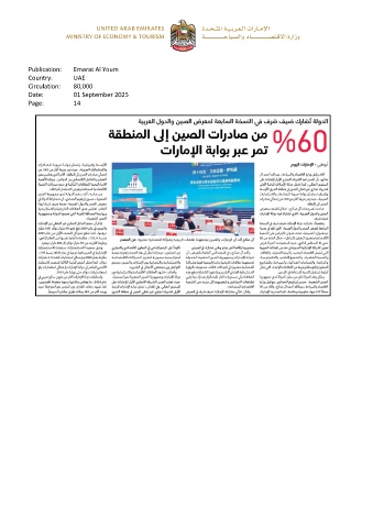 Publication: Emarat Al Youm Country: UAE Circulation: 80,000 Date: 01 September 2025 Page: 14