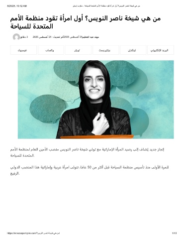 8/26/25, 10:12 AM رﯾﺎﺑﻣإ بوﻛﺳ - ﺔﺣﺎﯾﺳﻠﻟ ةدﺣﺗﻣﻟا مﻣﻷا ﺔﻣظﻧﻣ دوﻘﺗ ةأرﻣا لوأ ؟سﯾوﻧﻟا رﺻﺎﻧ ﺔﺧﯾﺷ ﻲھ نﻣ