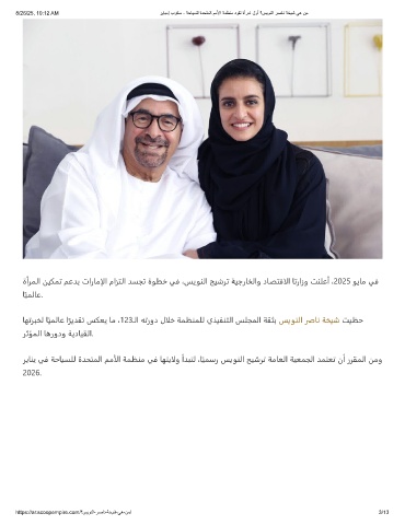 ةأﺮﻤﻟا ﻦﻴﻜﻤﺗ ﻢﻋﺪﺑ تارﺎﻣإلا ماﺰﺘﻟا ﺪﺴﺠﺗ ةﻮﻄﺧ ﻲﻓ ،ﺲﻳﻮﻨﻟا ﺢﻴﺷﺮﺗ ﺔﻴﺟرﺎﺨﻟاو دﺎﺼﺘﻗالا ﺎﺗرازو ﺖﻨﻠﻋأ ،2025 ﻮﻳﺎﻣ ﻲﻓ