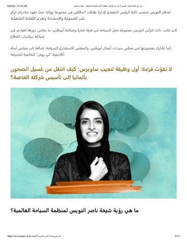 8/26/25, 10:12 AM رﯾﺎﺑﻣإ بوﻛﺳ - ﺔﺣﺎﯾﺳﻠﻟ ةدﺣﺗﻣﻟا مﻣﻷا ﺔﻣظﻧﻣ دوﻘﺗ ةأرﻣا لوأ ؟سﯾوﻧﻟا رﺻﺎﻧ ﺔﺧﯾﺷ ﻲھ نﻣ