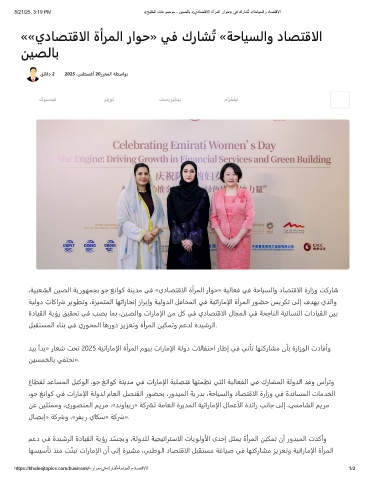 8/21/25, 3:19 PM «ﺞﯾﻠﺧﻟا تﺎﻋوﺿوﻣ - نﯾﺻﻟﺎﺑ «يدﺎﺻﺗﻗﻻا ةأرﻣﻟا راوﺣ» ﻲﻓ كرﺎﺷُﺗ «ﺔﺣﺎﯾﺳﻟاو دﺎﺻﺗﻗﻻا