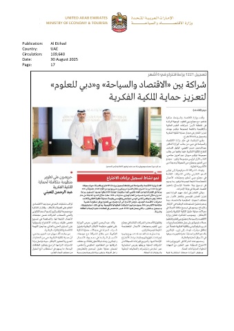 Publication: Al Etihad Country: UAE Circulation: 109,640 Date: 30 August 2025 Page: 17
