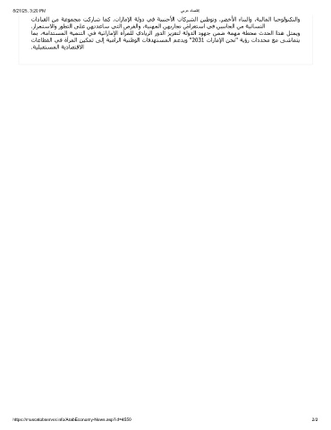 تادﺎﯿﻘﻟا ﻦﻣ ﺔﻋﻮﻤﺠﻣ ﺖﻛرﺎﺷ ﺎﻤﻛ .تارﺎﻣﻹا ﺔﻟود ﻲﻓ ﺔﯿﺒﻨﺟﻷا تﺎﻛﺮﺸﻟا ﻦﯿطﻮﺗو ،ﺮﻀﺧﻷا ءﺎﻨﺒﻟاو ،ﺔﯿﻟﺎﻤﻟا ﺎﯿﺟﻮﻟﻮﻨﻜﺘﻟاو