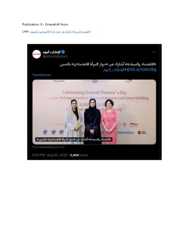 Publication: X – Emarat Al Youm ُ Link: « نيصلاب »يداصتقلاا ةأرلما راوح« يف كراشت »ةحايسلاو داصتقلاا