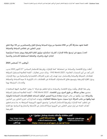 8/20/25, 2:23 PM "ﺔﯾﺣﺎﯾﺳﻟا تارﺎﻣﺛﺗﺳﻻا ﻊﯾﺳوﺗو تﺎﻛارﺷﻟا زﯾزﻌﺗ ثﺣﺑﻟ لﺑﻘﻣﻟا رﺑوﺗﻛأ ﻲﻓ "ﻲﺣﺎﯾﺳﻟا رﺎﻣﺛﺗﺳﻼﻟ ﺎﯾﻘﯾرﻓإو تارﺎﻣﻹا ﺔﻣﻗ " فﯾﺿﺗﺳﺗ "ﺔﺣﺎﯾﺳﻟاو دﺎﺻﺗﻗﻻا - Business News