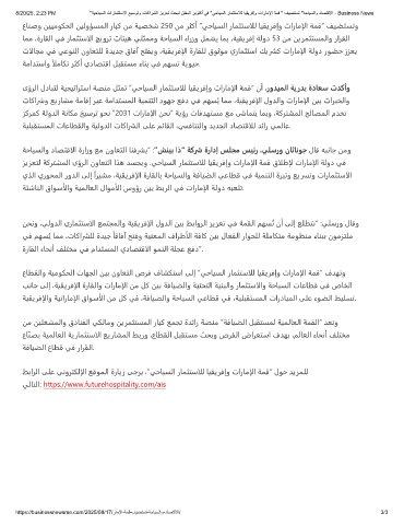 8/20/25, 2:23 PM "ﺔﯾﺣﺎﯾﺳﻟا تارﺎﻣﺛﺗﺳﻻا ﻊﯾﺳوﺗو تﺎﻛارﺷﻟا زﯾزﻌﺗ ثﺣﺑﻟ لﺑﻘﻣﻟا رﺑوﺗﻛأ ﻲﻓ "ﻲﺣﺎﯾﺳﻟا رﺎﻣﺛﺗﺳﻼﻟ ﺎﯾﻘﯾرﻓإو تارﺎﻣﻹا ﺔﻣﻗ " فﯾﺿﺗﺳﺗ "ﺔﺣﺎﯾﺳﻟاو دﺎﺻﺗﻗﻻا - Business News