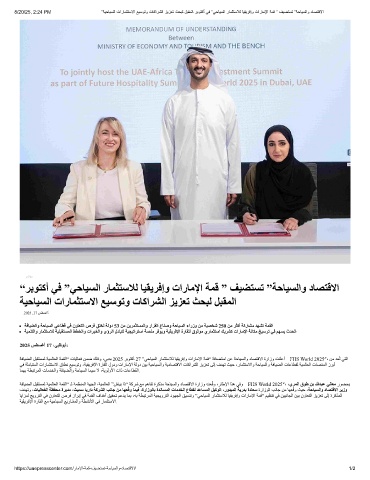 8/20/25, 2:24 PM “ﺔﯾﺣﺎﯾﺳﻟا تارﺎﻣﺛﺗﺳﻻا ﻊﯾﺳوﺗو تﺎﻛارﺷﻟا زﯾزﻌﺗ ثﺣﺑﻟ لﺑﻘﻣﻟا رﺑوﺗﻛأ ﻲﻓ ”ﻲﺣﺎﯾﺳﻟا رﺎﻣﺛﺗﺳﻼﻟ ﺎﯾﻘﯾرﻓإو تارﺎﻣﻹا ﺔﻣﻗ ” فﯾﺿﺗﺳﺗ ”ﺔﺣﺎﯾﺳﻟاو دﺎﺻﺗﻗﻻا