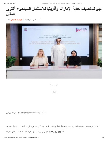 8/20/25, 2:24 PM يرﺎﺑﺧﻹا ﺎﯾدﯾﻣ - لﺑﻘﻣﻟا رﺑوﺗﻛأ «ﻲﺣﺎﯾﺳﻟا رﺎﻣﺛﺗﺳﻼﻟ ﺎﯾﻘﯾرﻓأو تارﺎﻣﻹا ﺔﻣﻗ» فﯾﺿﺗﺳﺗ ﻲﺑد