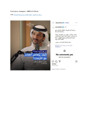 Publication: Instagram – MBRCLD Official Link: اهداصتقا ةفعاضم وحن تاراملإا تقلطنا …انوروك ةمزأ بلق نم.