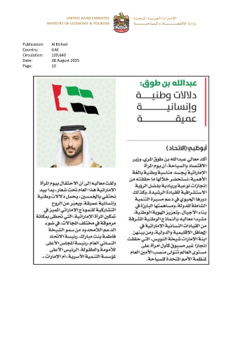 Publication: Al Etihad Country: UAE Circulation: 109,640 Date: 28 August 2025 Page: 10