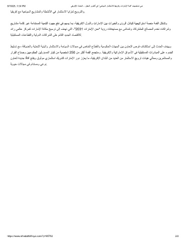 8/19/25, 1:54 PM ﻲﻘﯾرﻓﻹا ثدﺣﻟا – لﺑﻘﻣﻟا رﺑوﺗﻛأ ﻲﻓ ”ﻲﺣﺎﯾﺳﻟا رﺎﻣﺛﺗﺳﻼﻟ ﺎﯾﻘﯾرﻓإو تارﺎﻣﻹا ﺔﻣﻗ“ فﯾﺿﺗﺳﺗ ﻲﺑد