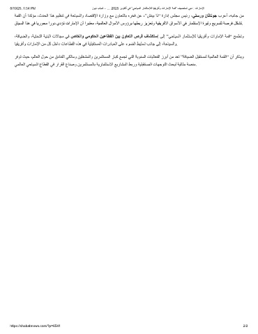 قﺎﯿﺴﻟا اﺬھ ﻲﻓ ﺎﯾرﻮﺤﻣ ارود يدﺆﺗ تارﺎﻣﻹا نأ اﺮﺒﺘﻌﻣ ،ﺔﯿﻤﻟﺎﻌﻟا لاﻮﻣﻷا سوؤﺮﺑ ﺎﮭﻄﺑر ﺰﯾﺰﻌﺗو ﺔﯿﻘﯾﺮﻓﻷا قاﻮﺳﻷا ﻲﻓ رﺎﻤﺜﺘﺳﻹا ةﺮﯿﺗو ﻊﯾﺮﺴﺘﻟ ﺔﺻﺮﻓ ﻞﻜﺸﺗ.