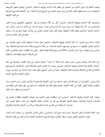 رارﻘﻟا عﺎنﺻو نييﻣوكحﻟا نيﻟوؤسمﻟا رﺎبك نﻣ ﺔيصخﺷ 250 نﻣ رثﻛأ ”ﻲﺣﺎيسﻟا رﺎمثتﺳﻼﻟ ﺎيقيرﻓإو تارﺎﻣﻹا ﺔمﻗ“ فيضتسﺗو