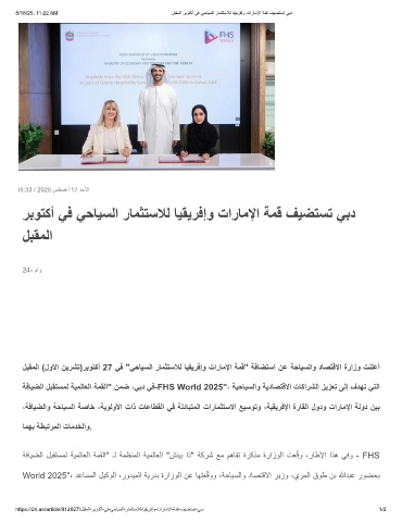 ﺔﻓﺎﯾﺿﻟا لﺑﻘﺗﺳﻣﻟ ﺔﯾﻣﻟﺎﻌﻟا ﺔﻣﻘﻟا" نﻣﺿ ،ﻲﺑد ﻲﻓ-FHS World 2025"، ﺔﯾﺣﺎﯾﺳﻟاو ﺔﯾدﺎﺻﺗﻗﻻا تﺎﻛارﺷﻟا زﯾزﻌﺗ ﻰﻟإ فدﮭﺗ ﻲﺗﻟا