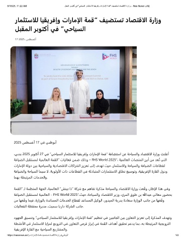 8/18/25, 11:22 AM لﺑﻘﻣﻟا رﺑوﺗﻛأ ﻲﻓ "ﻲﺣﺎﯾﺳﻟا رﺎﻣﺛﺗﺳﻼﻟ ﺎﯾﻘﯾرﻓإو تارﺎﻣﻹا ﺔﻣﻗ" فﯾﺿﺗﺳﺗ دﺎﺻﺗﻗﻻا ةرازو - Nas News UAE