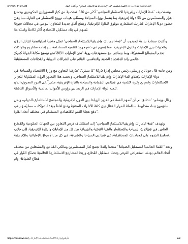 8/18/25, 11:22 AM لﺑﻘﻣﻟا رﺑوﺗﻛأ ﻲﻓ "ﻲﺣﺎﯾﺳﻟا رﺎﻣﺛﺗﺳﻼﻟ ﺎﯾﻘﯾرﻓإو تارﺎﻣﻹا ﺔﻣﻗ" فﯾﺿﺗﺳﺗ دﺎﺻﺗﻗﻻا ةرازو - Nas News UAE