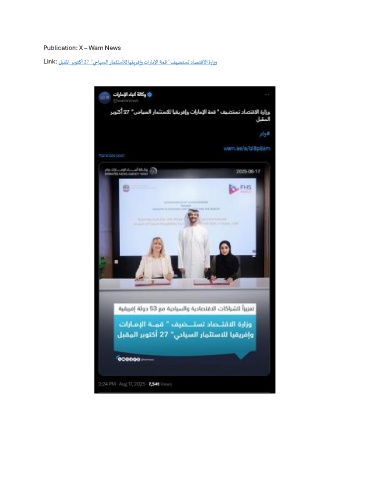 Publication: X – Wam News Link: لبقلما ربوتكأ 27 "يحايسلا رامثتسلال ايقيرفإو تاراملإا ةمق " فيضتست داصتقلاا ةرازو