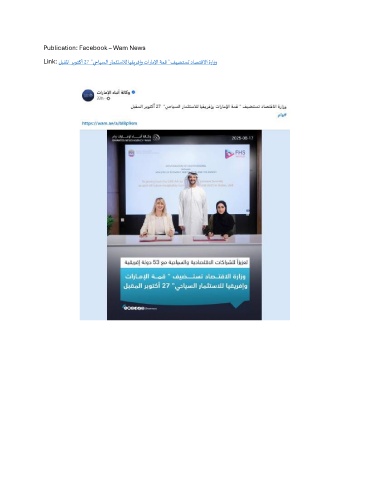 Publication: Facebook – Wam News Link: لبقلما ربوتكأ 27 "يحايسلا رامثتسلال ايقيرفإو تاراملإا ةمق " فيضتست داصتقلاا ةرازو