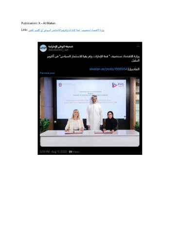 Publication: X – Al Watan Link: لبقلما ربوتكأ يف "يحايسلا رامثتسلال ايقيرفإو تاراملإا ةمق " فيضتست داصتقلاا ةرازو