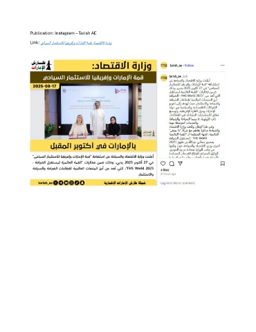 Publication: Instagram – Tarish AE Link: يحايسلا رامثتسلال ايقيرفإو تاراملإا ةمق :داصتقلاا ةرازو